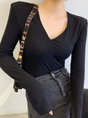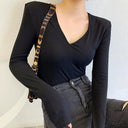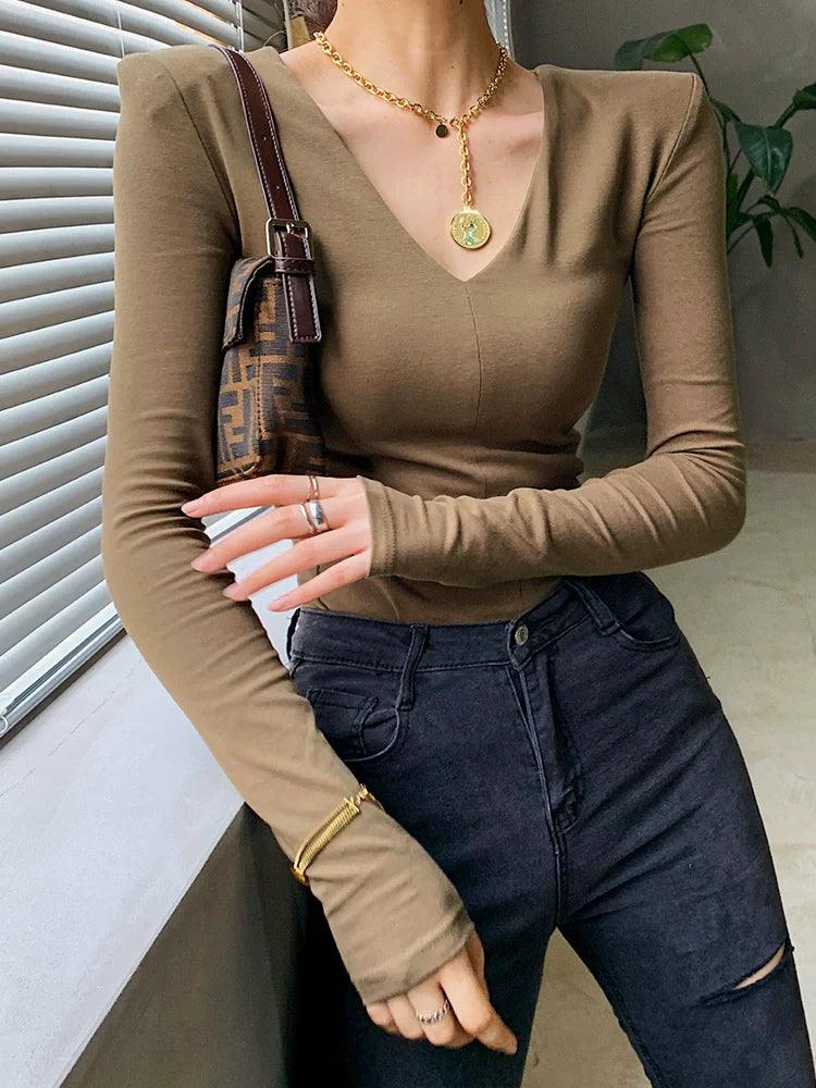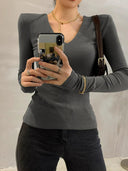 European Chic V-neck Long-Sleeve T-shirt Sophisticated Comfort