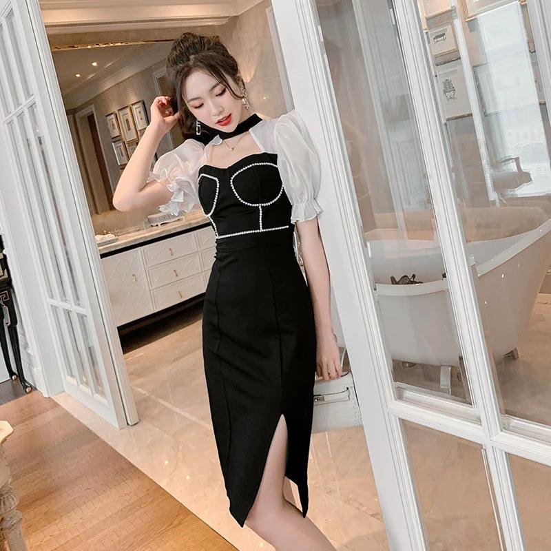 Vintage Rhinestone Women's Dress Elegant European Charm