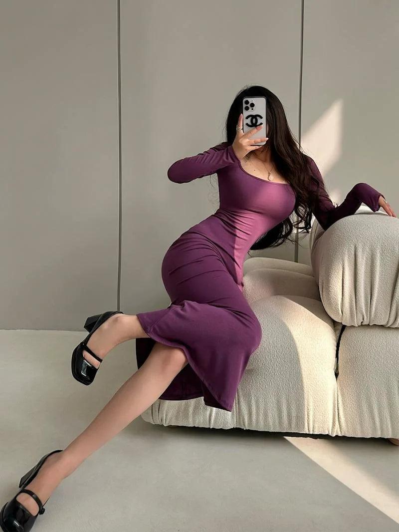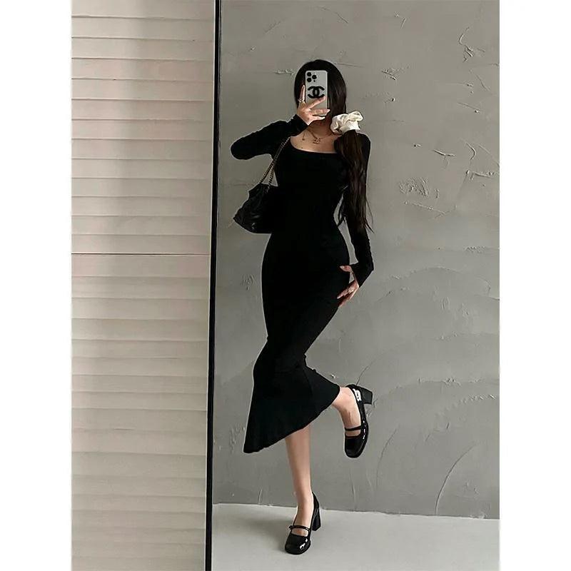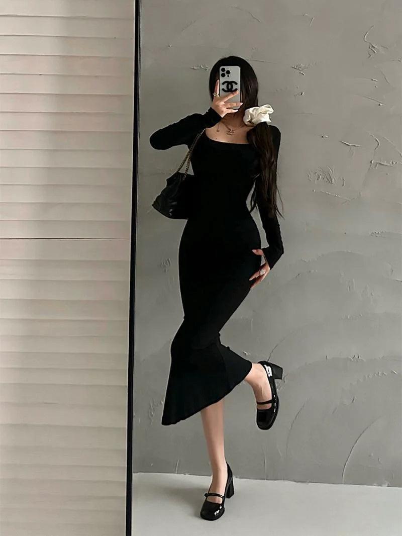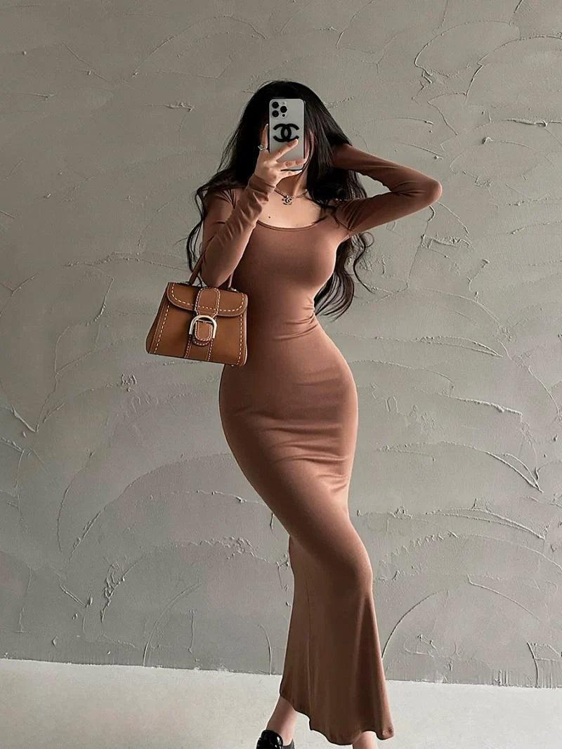 The Desire Style Fishtail Dress features a sexy low collar and a snug fit to beautifully accentuate your silhouette. Its narrow fishtail design adds sophistication, making it perfect for any autumn gathering.