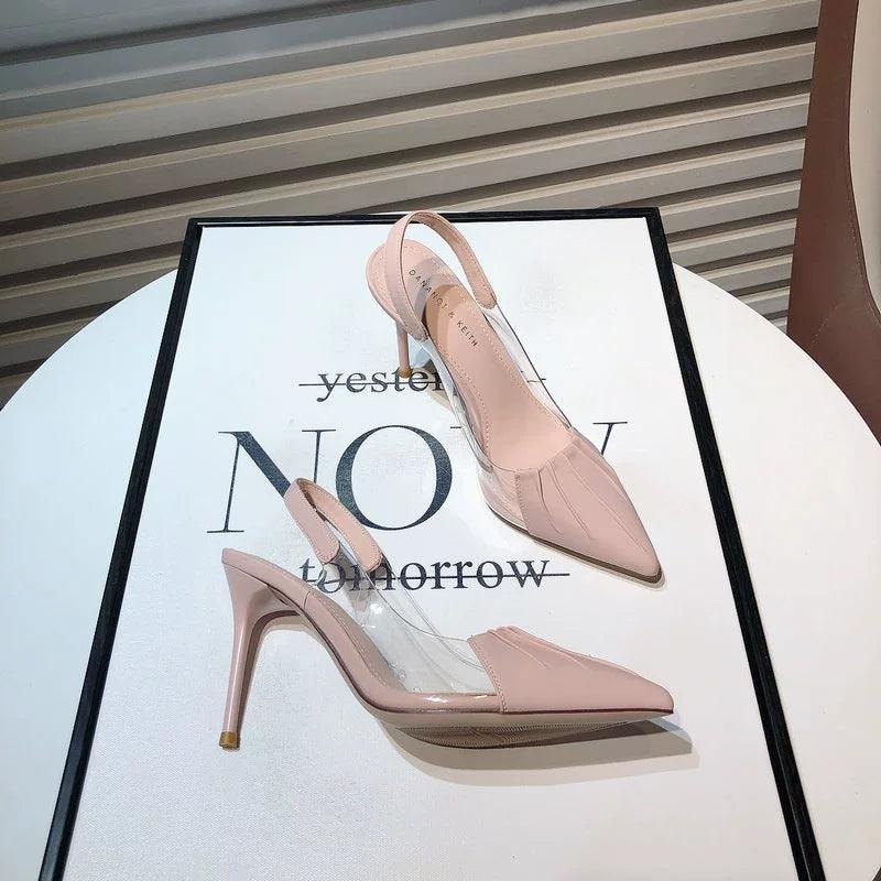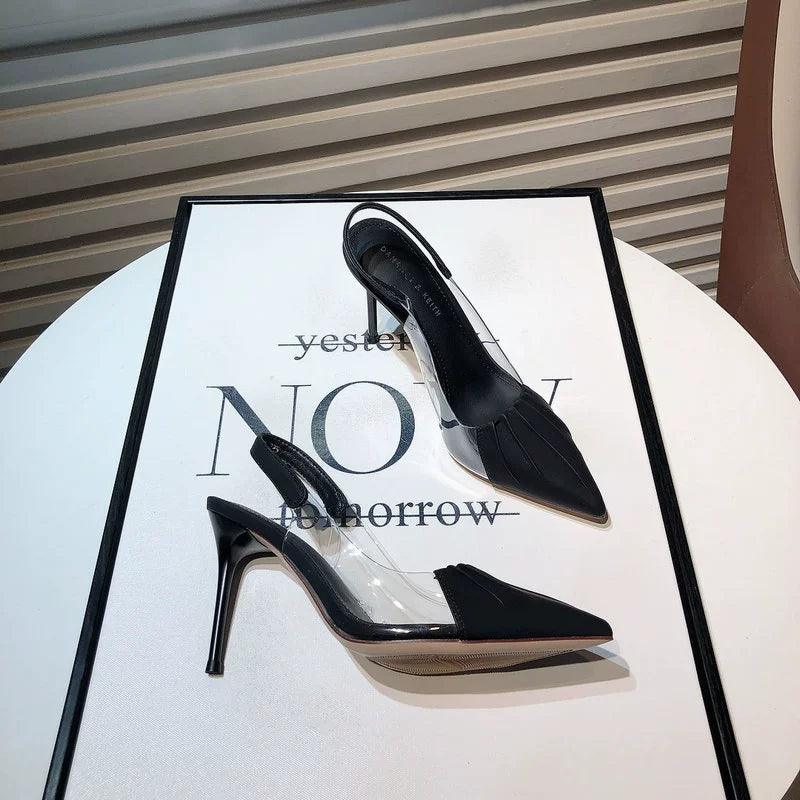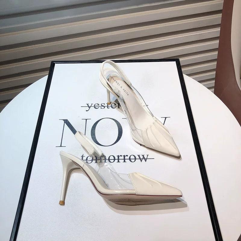 Looking for the perfect pair? Search for Fairy Style Shoes, Transparent Stitching Shoes, Elegant High Heel Footwear, Spring 2023 Shoes, Korean-style Shoes, Color Matching Shoes, Youthful Footwear, Birthday Party Shoes, Pointed Toe Shoes, and Chic High Heels.