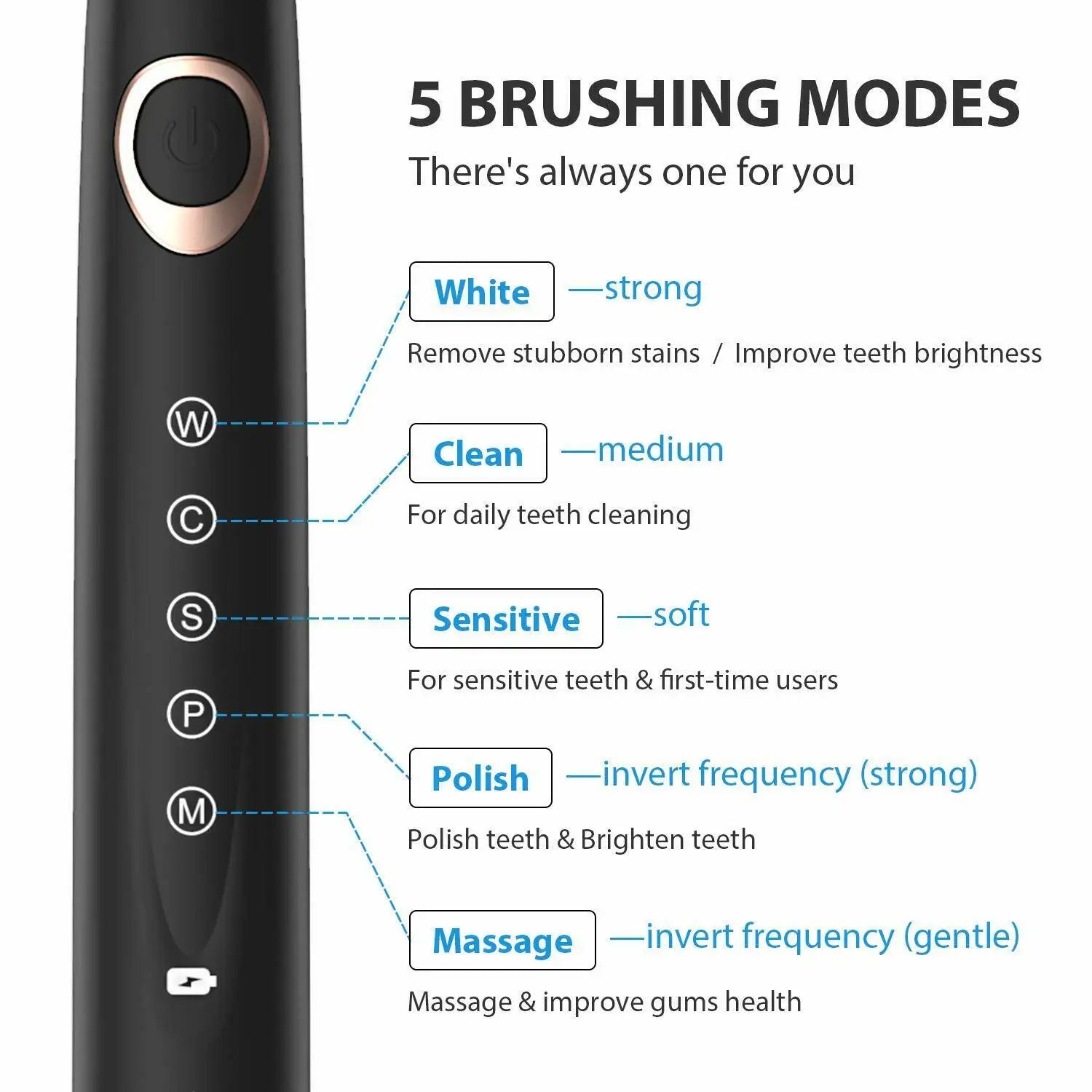 Fairywill Sonic Electric Toothbrushes for Adults Kids 5 Modes