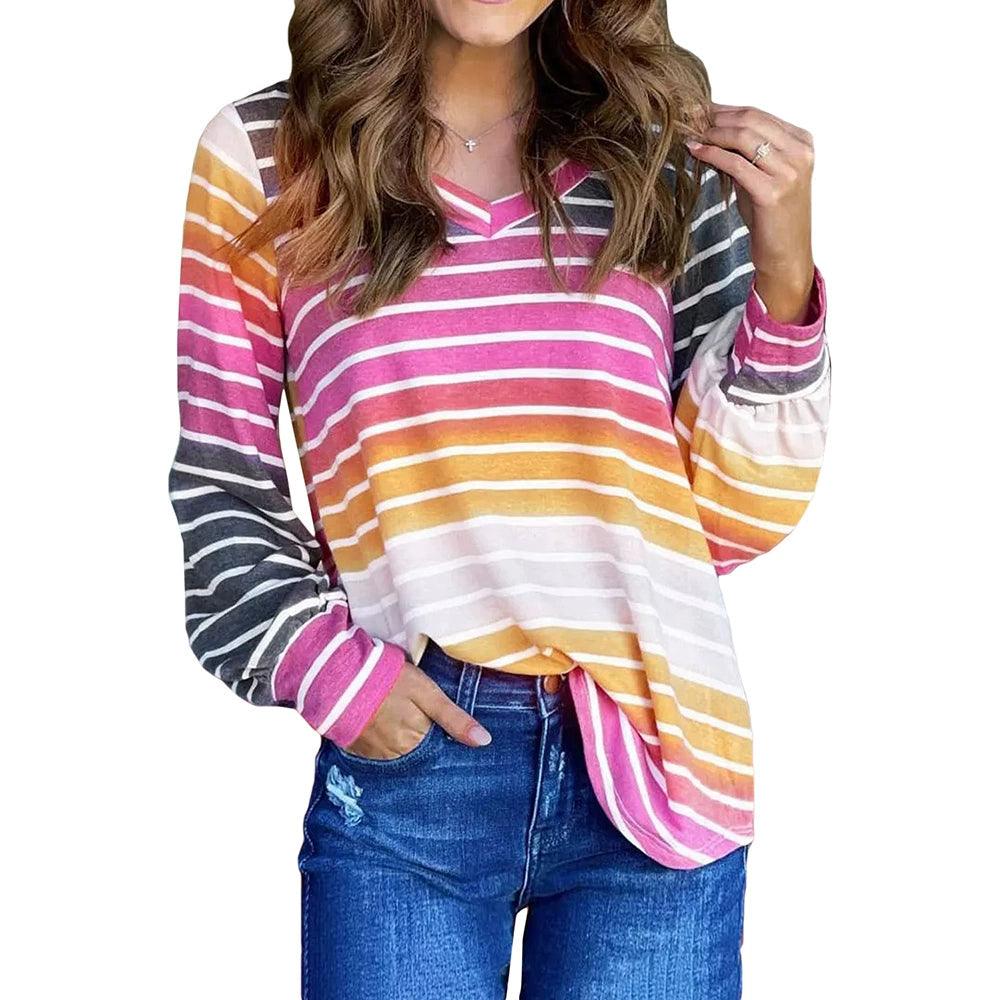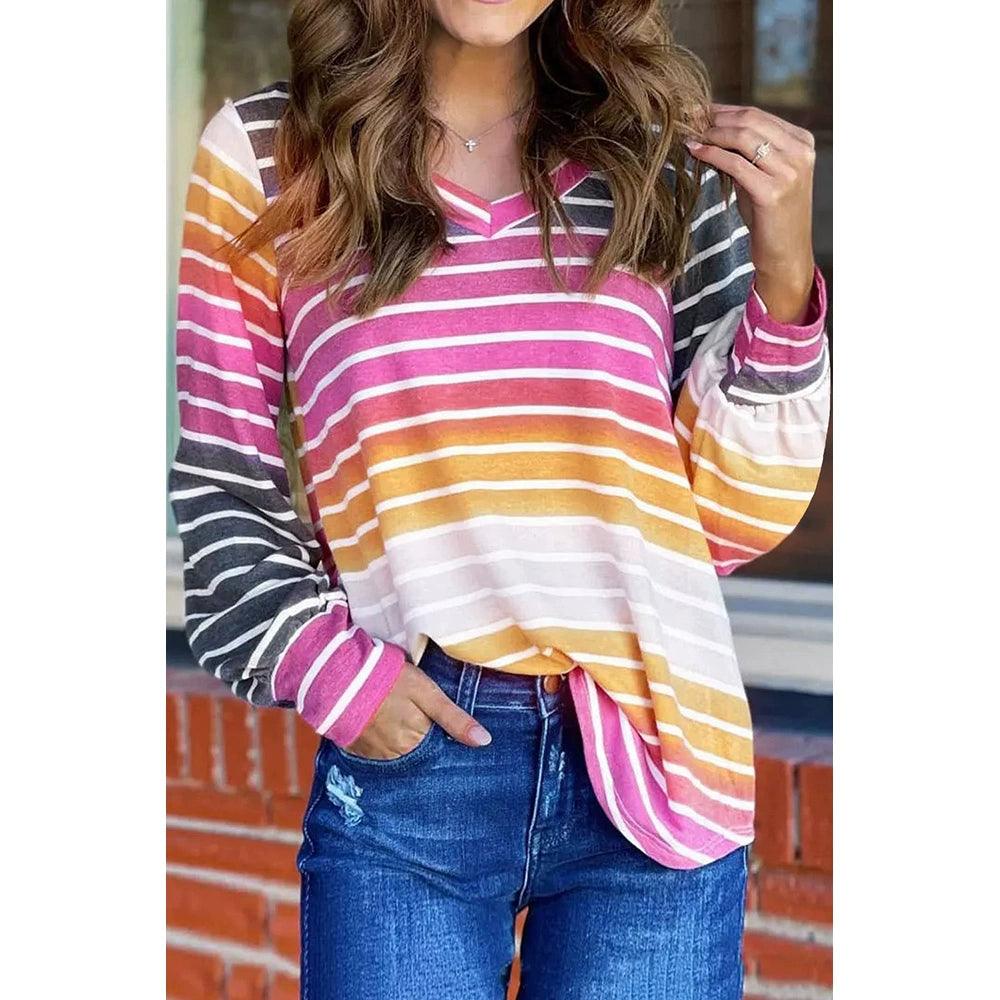 Don't miss your chance to stand out! Order now and elevate your wardrobe with the Fall and Winter Color Stripes Thin V Neck Long Sleeves T-shirt today!