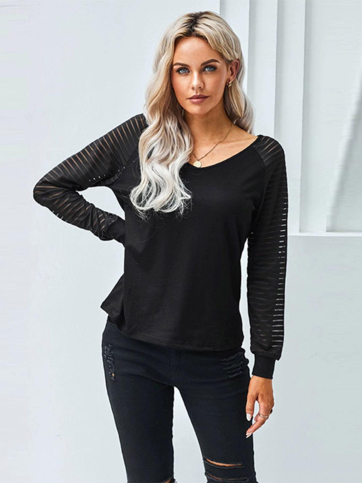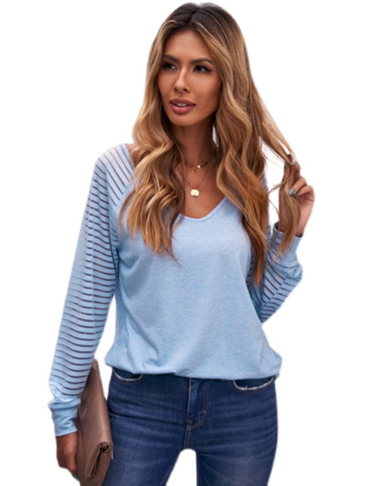 Fall and Winter Cut Out Simple European American Long Sleeve Top