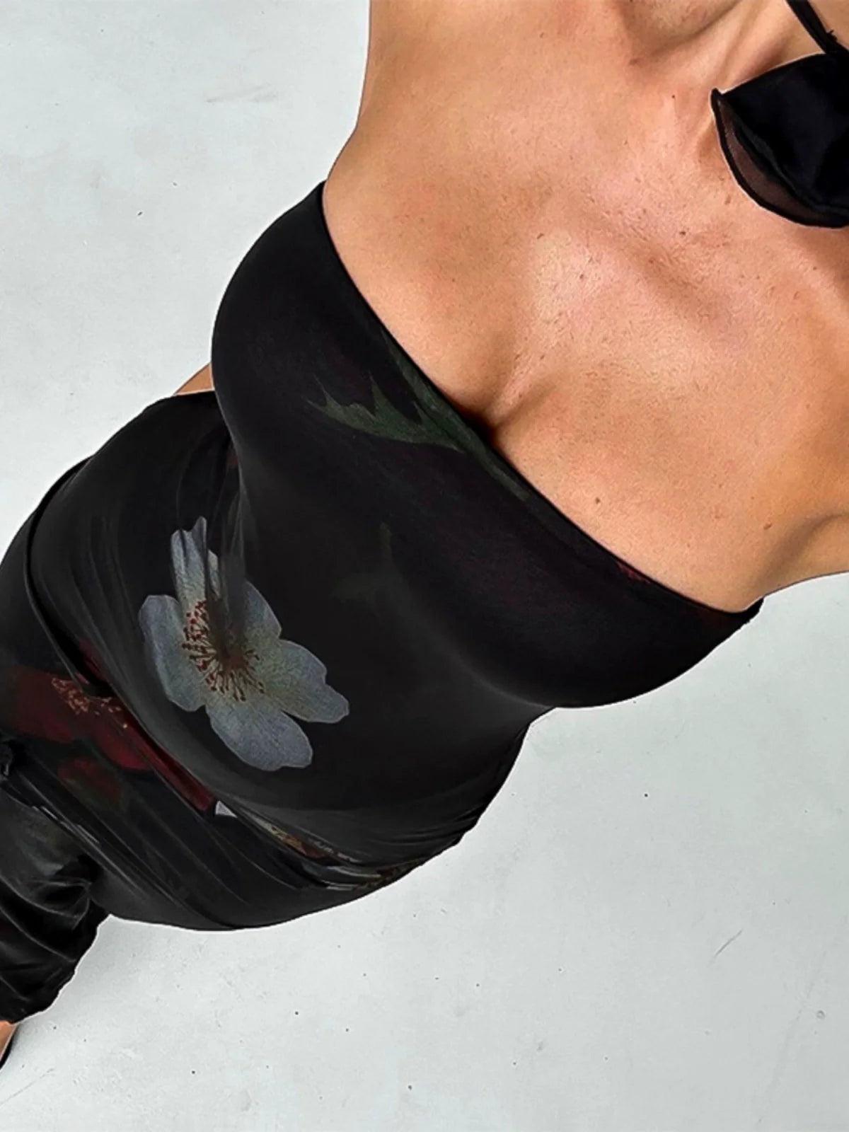 Discover the Elegant Lady Wind Dress: Floral Print Tube Top Dress with Lace Detail