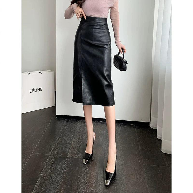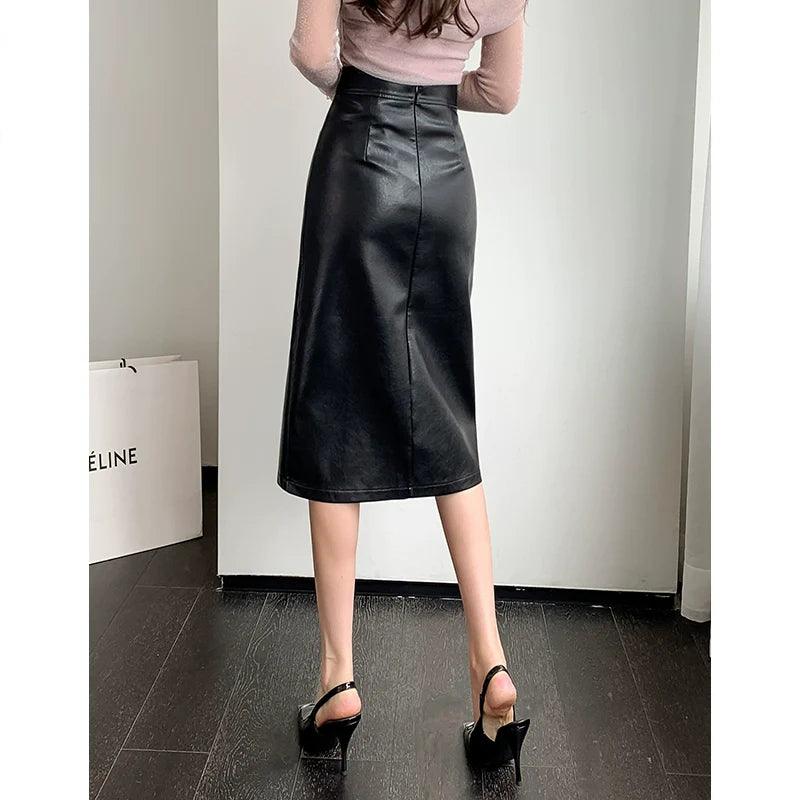 Embrace the luxury and practicality of our High-Waist Leather Skirt—the ideal addition to your contemporary wardrobe. Let your outfit do the talking this season!
