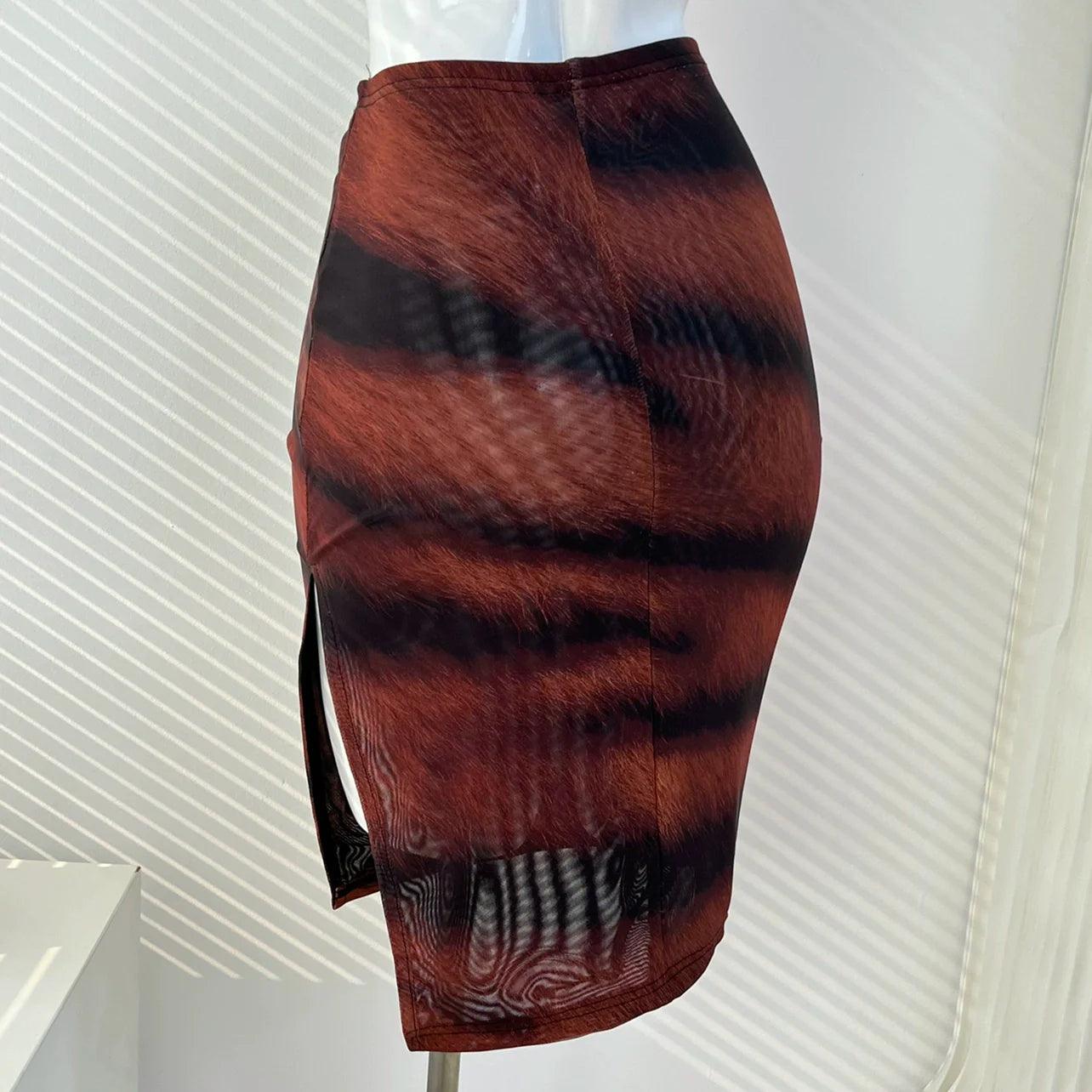 Wild Attraction: Chic Animal Print Mesh Skirt High Waist