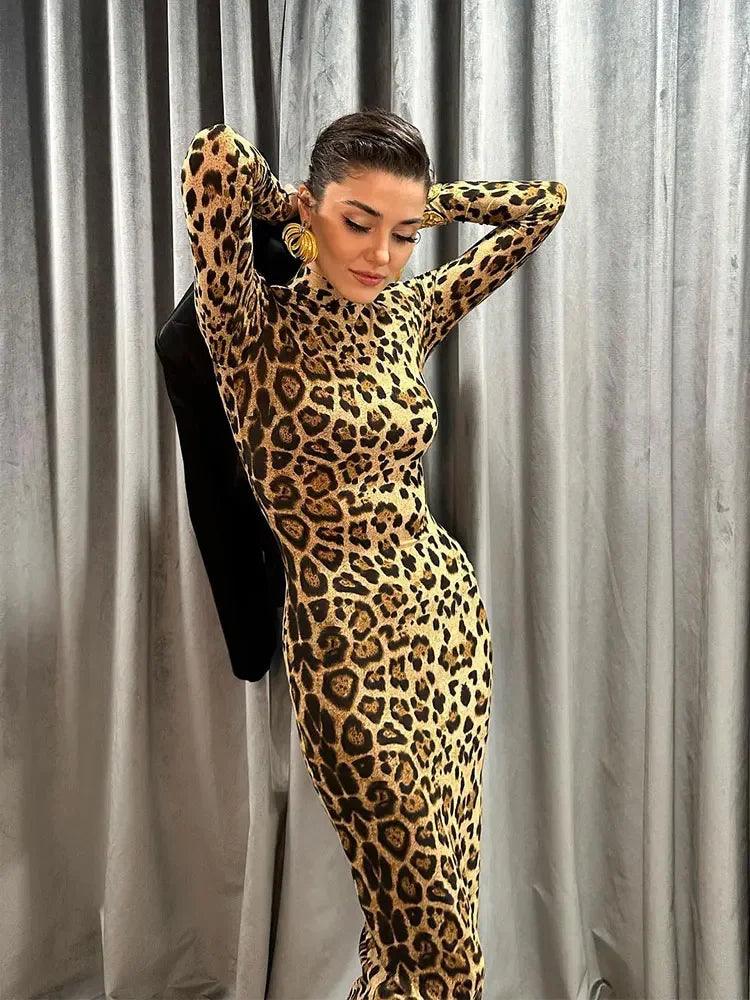 Leopard Print Maxi Dress: Elegant Party Gown with Sequins