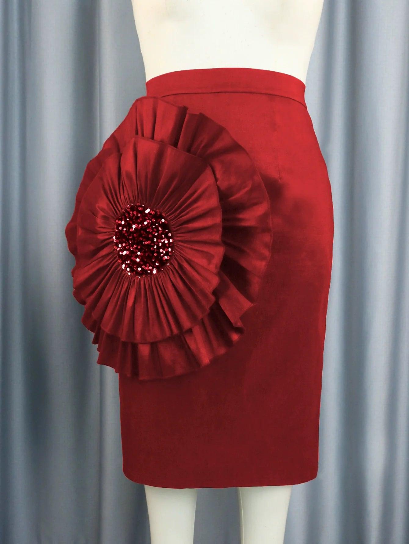 Stay on-trend with a gorgeous style that appeals to the youthful spirit of ages 18-24. With its solid color pattern and exquisite floral design, this Sophisticated Floral Midi Skirt isn't just clothing; it’s a statement of your unique style.