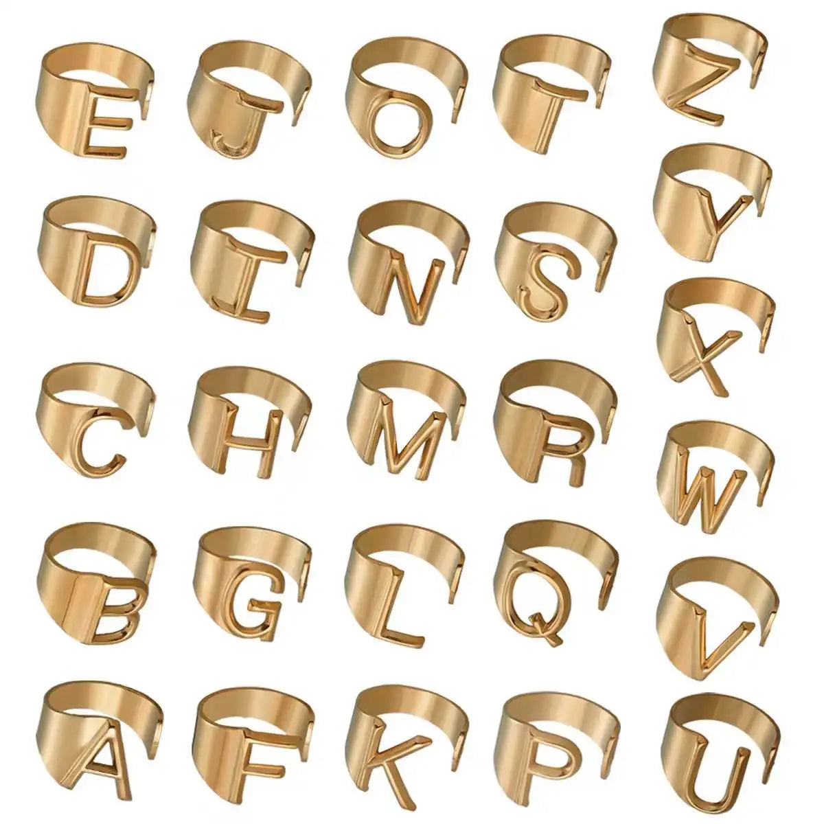 Check out our collection of Fashion Stainless Steel Letter Initial Rings for Couples, personalized initials rings, unisex jewelry, adjustable rings, stylish alphabet rings, gifts for couples, and elegant daily wear jewelry.
