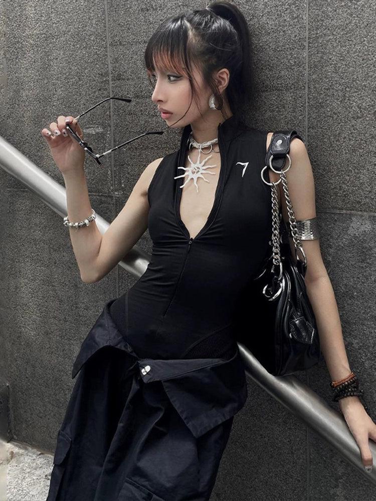 Zipper Collar Athletic Bodysuit Sleek Summer Yoga Sports