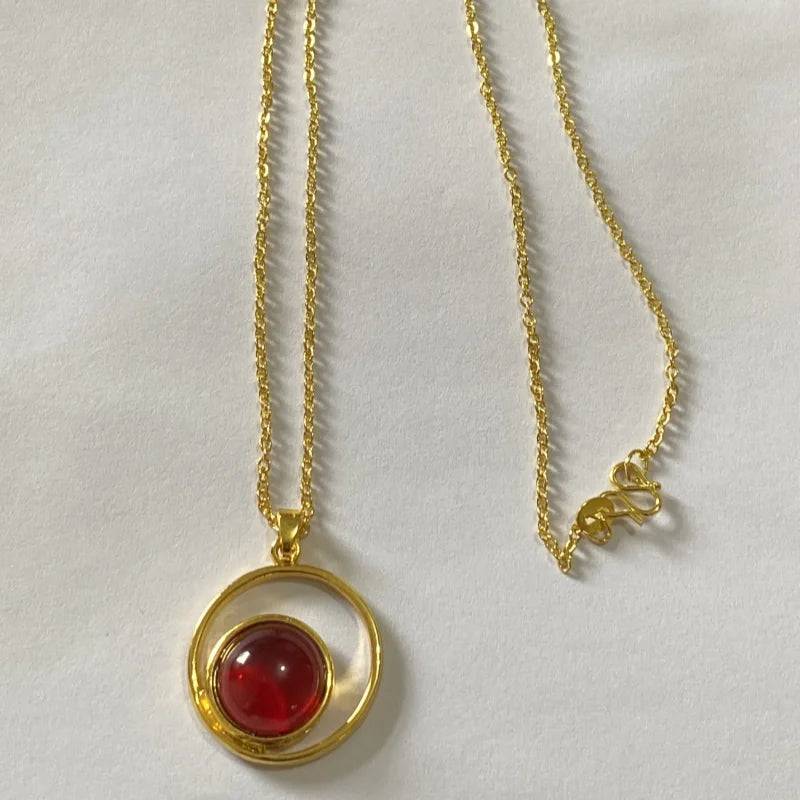 Fashionable Red Gemstone Jewelry Set For Women Pendant Earrings Ring Geometric