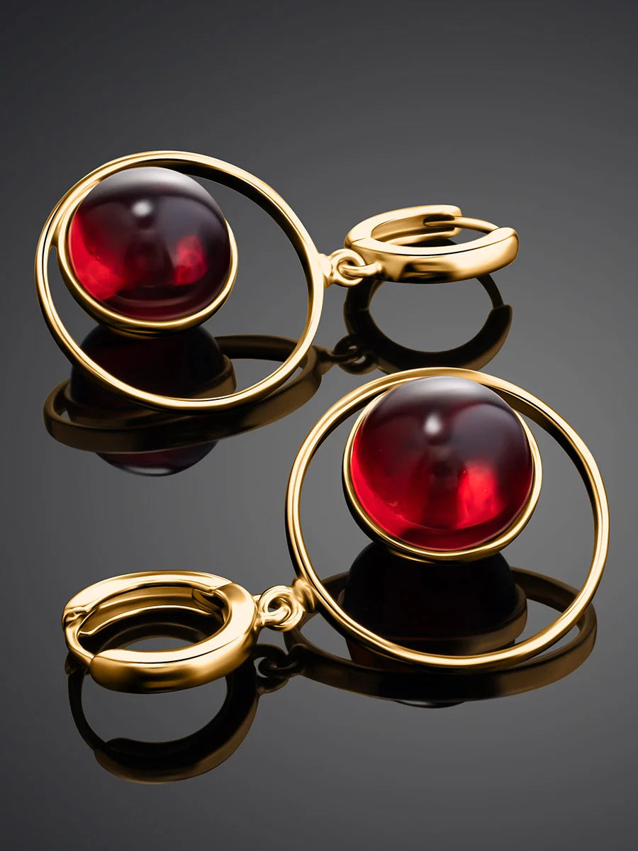 Bold red gemstones meet clean geometric lines in a harmonious design that transitions from ceremony to night out. The combination of a striking color and contemporary shapes creates a versatile accessory trio that styling-conscious wearers can reach for again and again. By using a zinc alloy base, the pieces maintain a slender silhouette with durability for repeated wear.