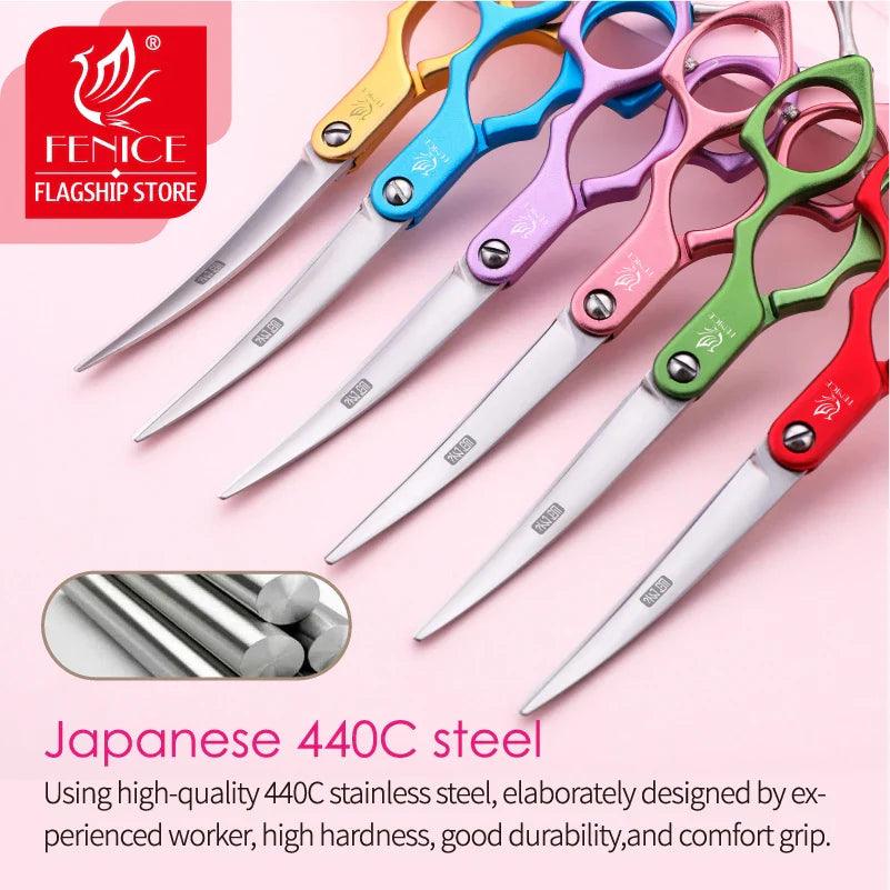 Fenice Curved Grooming Scissors for Dogs and Cats - Precision Grooming Tools
