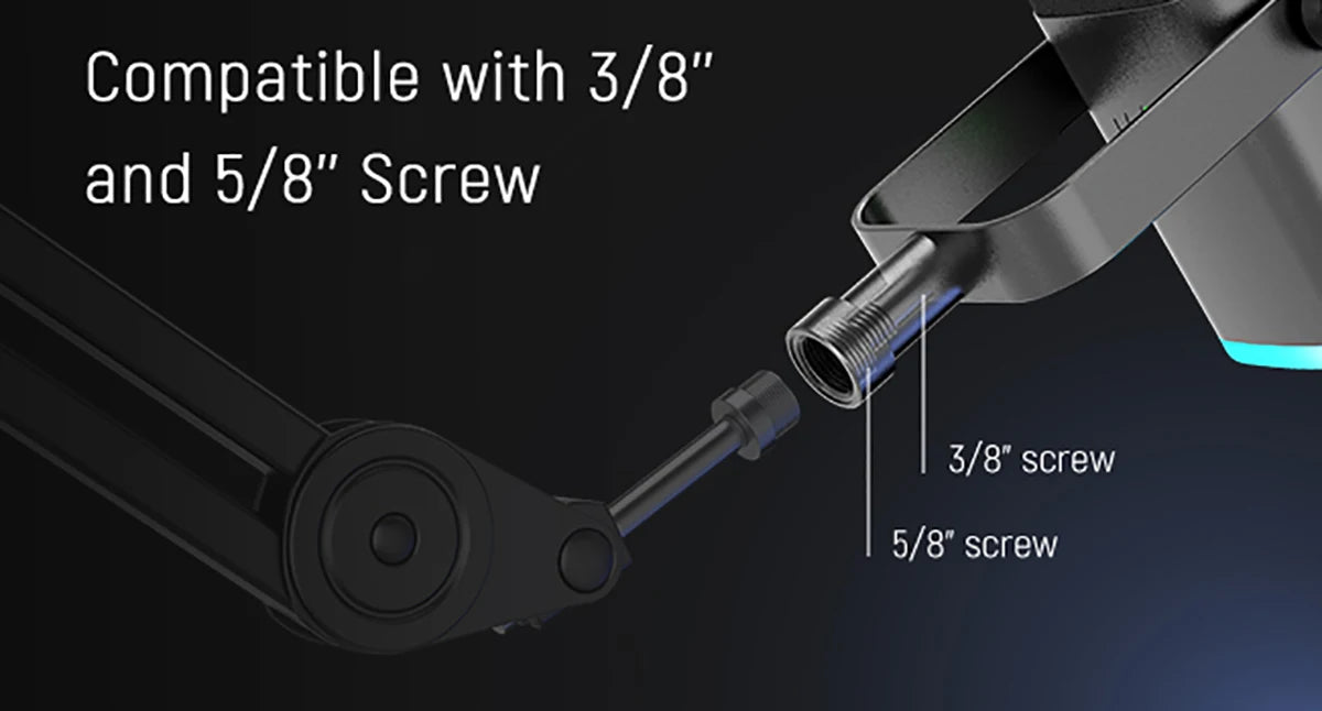 • 5. Multi-Stand Compatibility: The AM8 is designed for versatility, compatible with both 3/8" and 5/8" nut sizes, allowing you to switch between desktop stands or boom arms effortlessly.
