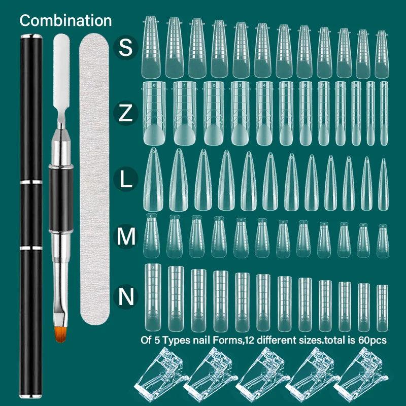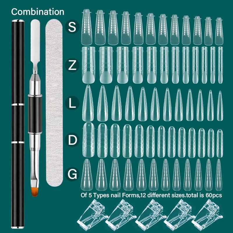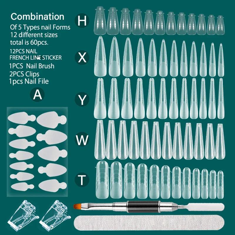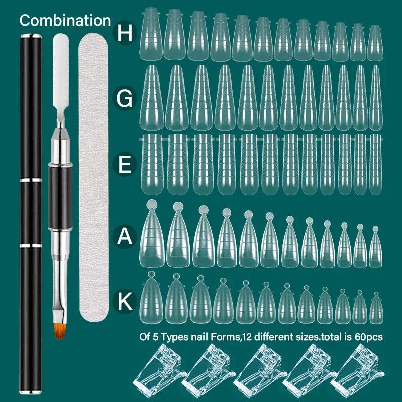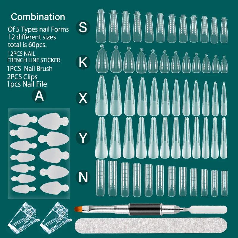 Nail Art Extension Kit: Stylish Dual Form Molds & Gel Clips