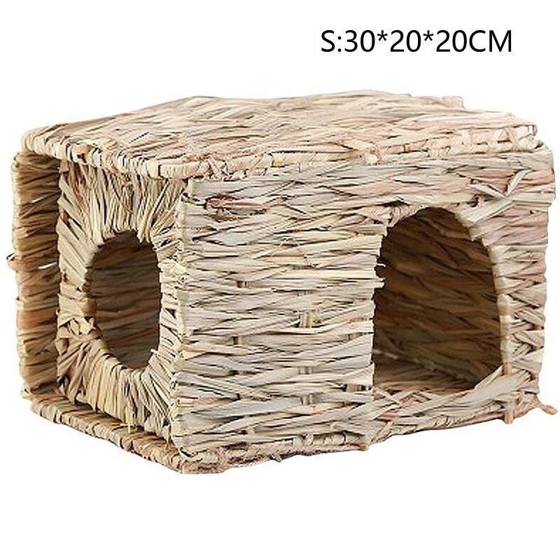 Welcome your small pets to a world of comfort with our Foldable Woven Grass Rabbit Cage Natural Habitat Chew Toy Bed. This innovative product is designed for rabbits, hamsters, and guinea pigs, combining both a cozy bed and a stimulating chew toy mat in one.