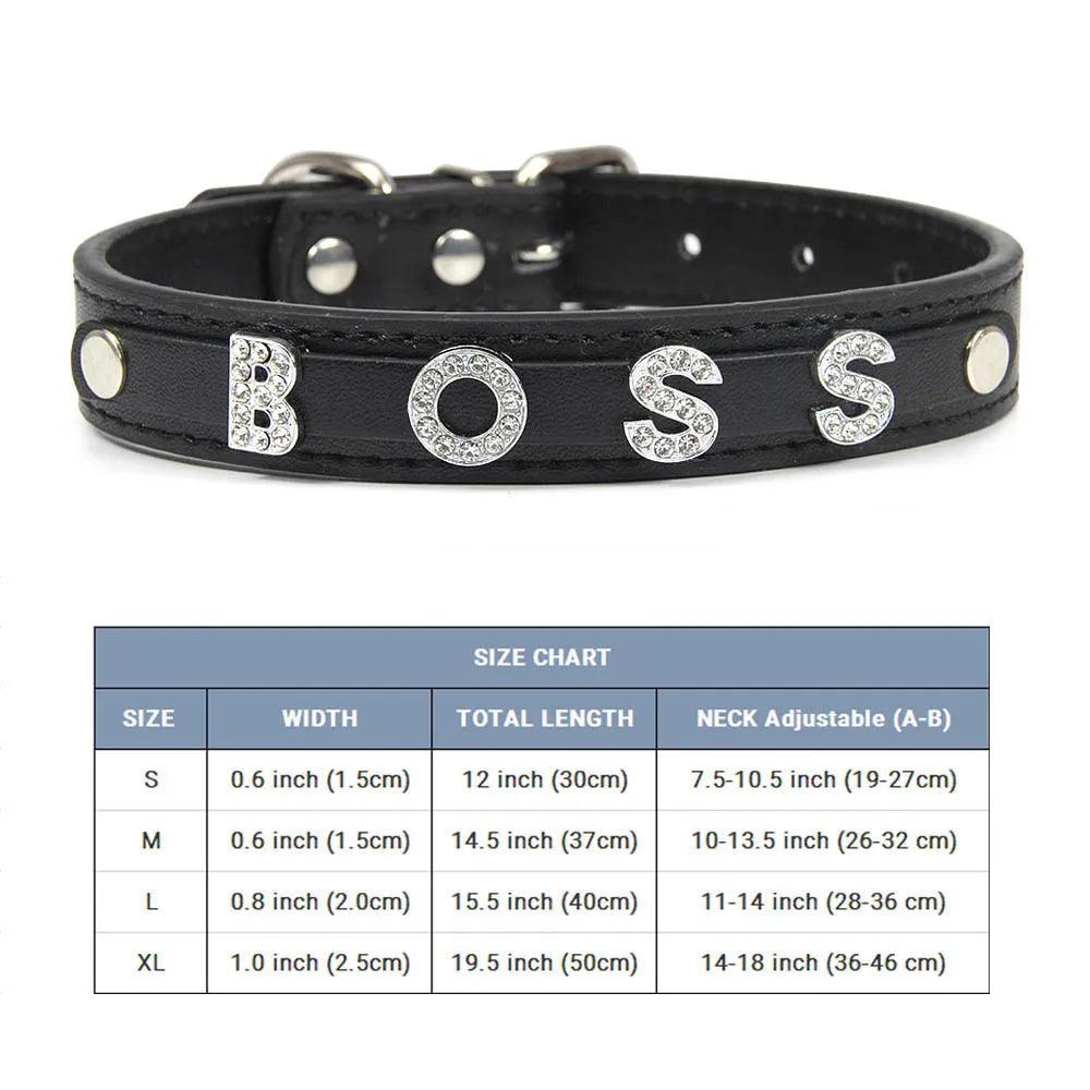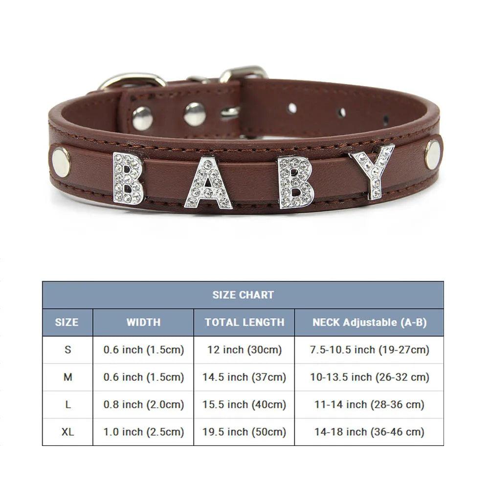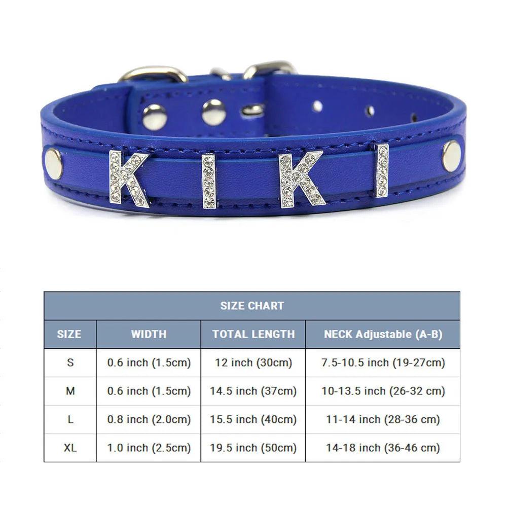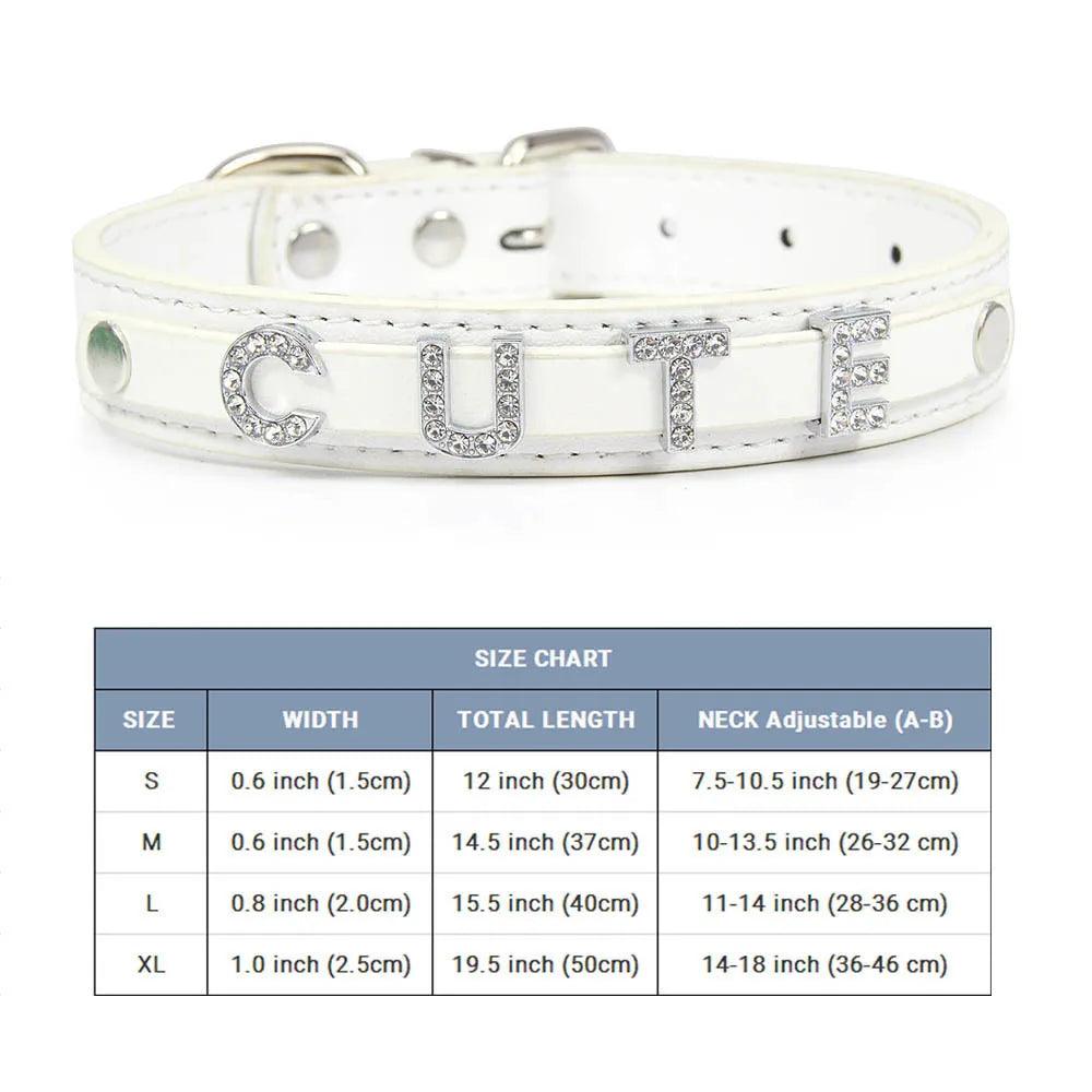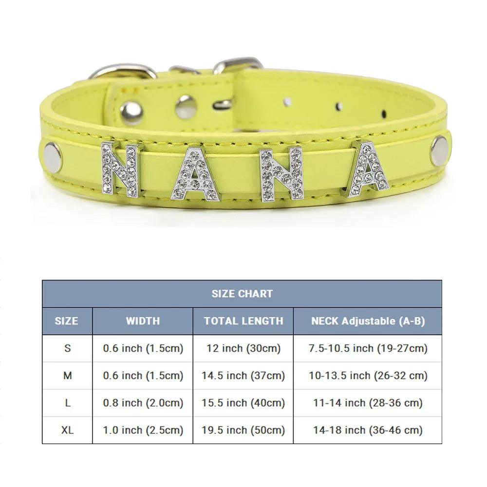Stylish Leather Personalized Pet Collar with Rhinestone Letters for Dogs