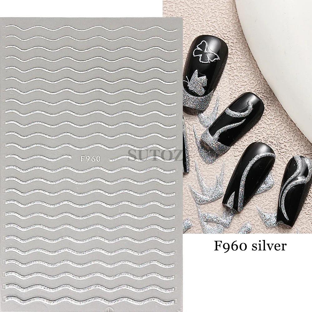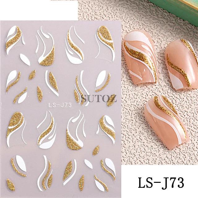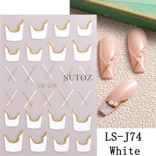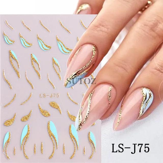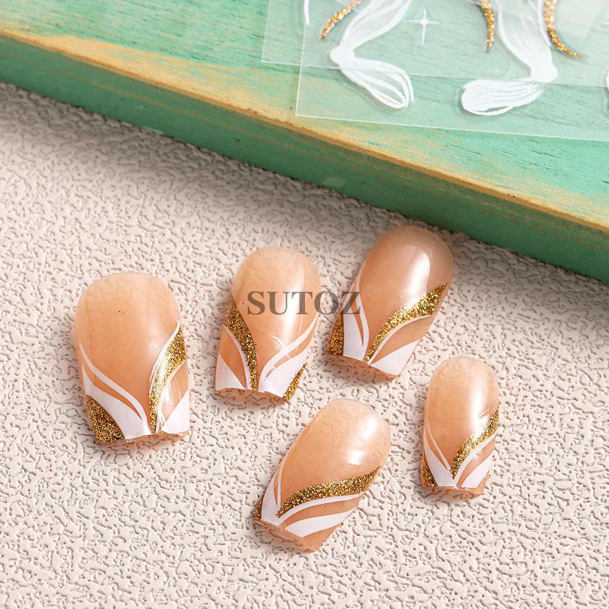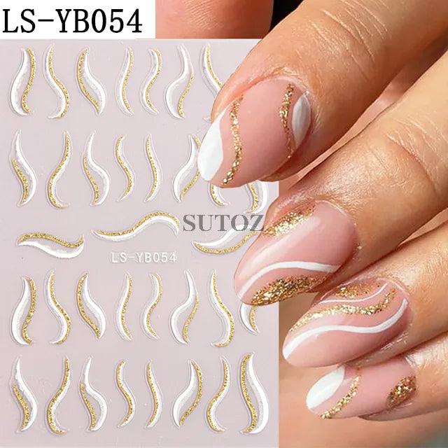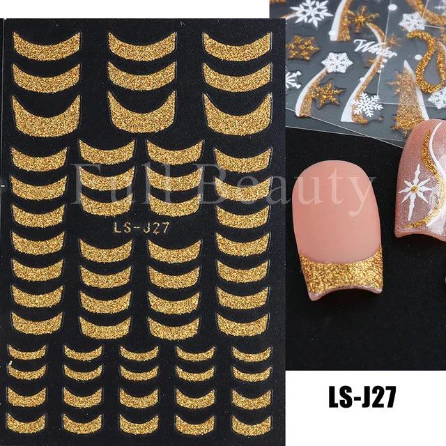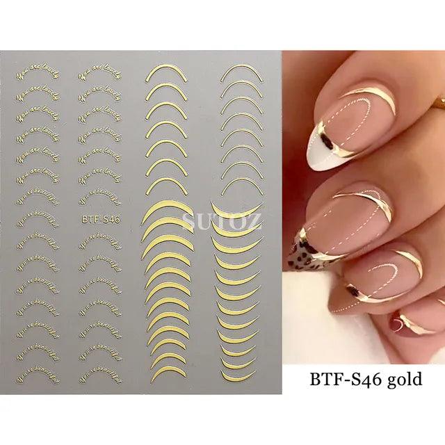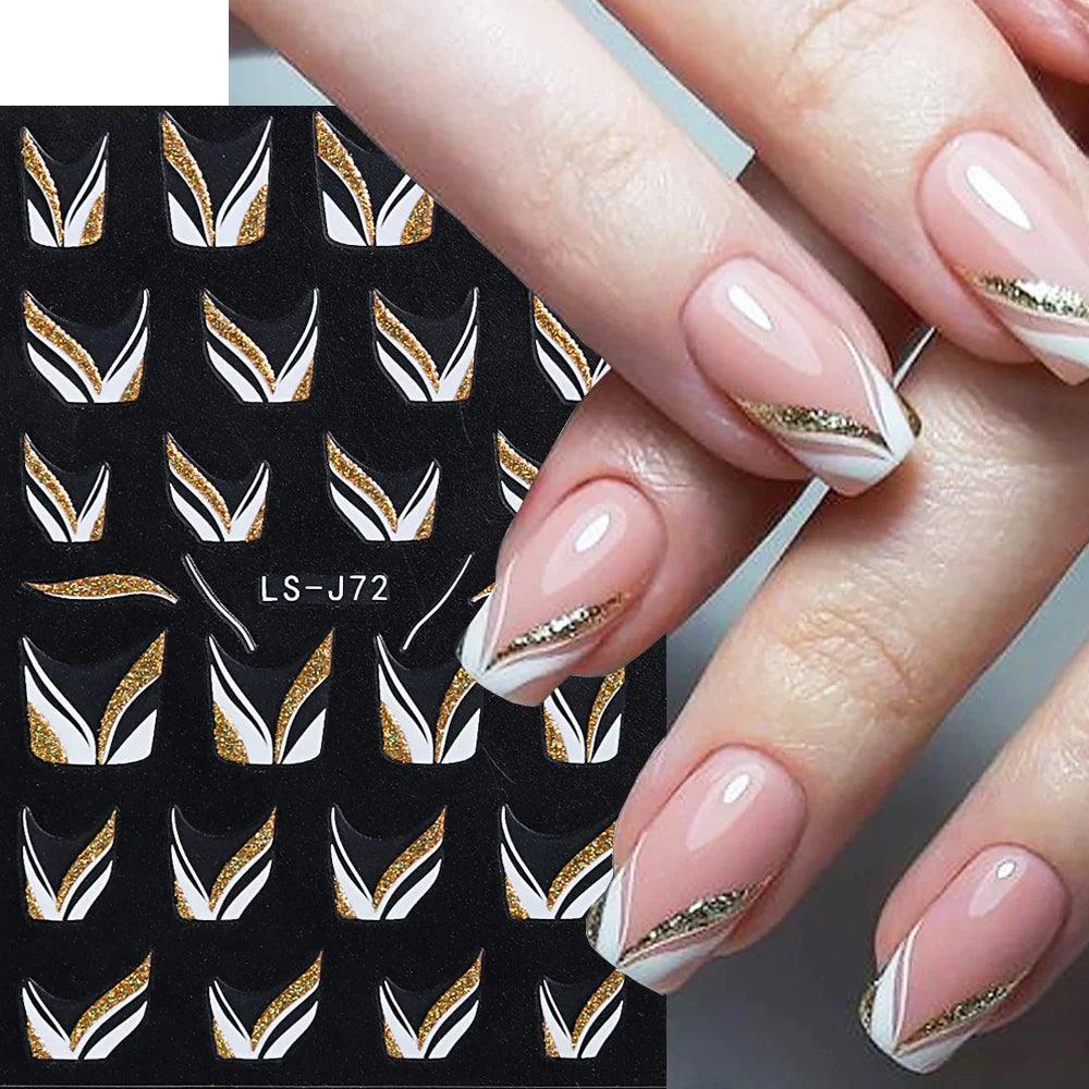 Golden Glam French Nail Art Stickers Chic Geometric Designs
