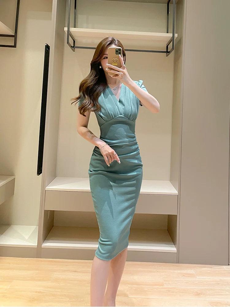 Step into elegance with our Sophisticated French-Inspired V-Neck Midi Dress Summer Workwear, designed to embody French-inspired sophistication for the modern woman's summer workwear collection. This dress is perfect for those looking for a blend of style and functionality.