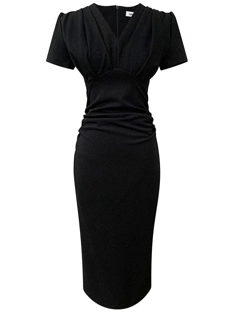 Sophisticated French-Inspired V-Neck Midi Dress Summer Workwear