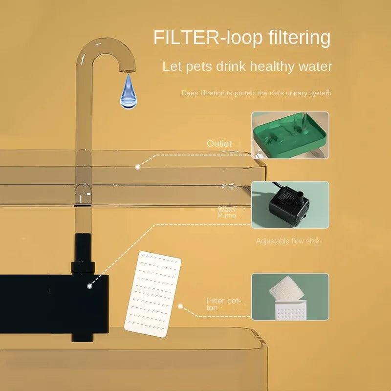 • Automatic Water Fountain: Maintains a continuous flow of fresh water, encouraging hydration.