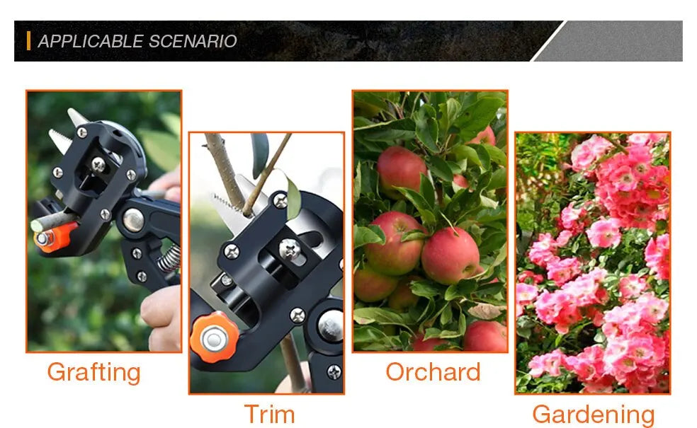 Elevate your gardening game with our Garden Tools Professional Farming Pruning Shears Grafting Scissor. These expertly designed tools are perfect for both professional farmers and enthusiastic gardeners alike. Whether you need to prune, graft, or maintain your plants, these versatile shears are essential for all your gardening tasks.
