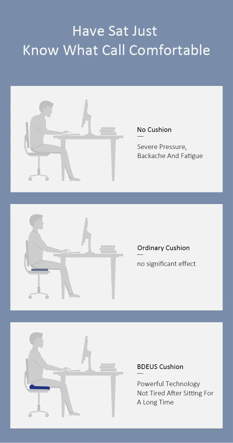 • Premium Memory Foam: Made from high-quality gel-infused memory foam, this cushion conforms to your body’s unique shape, offering customized comfort that lasts through long hours of sitting.