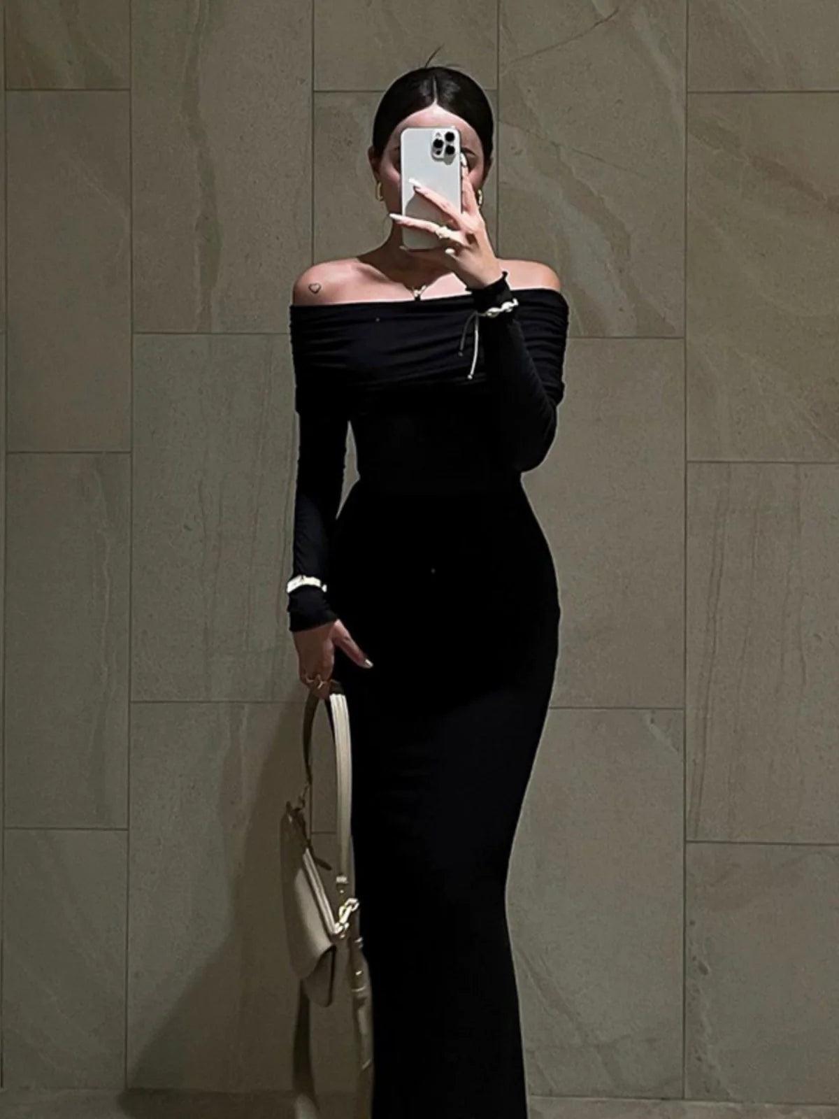 GirlsAt18 Black Knit Dress Elegant Autumn Sensuality Style