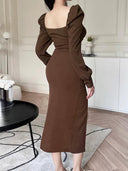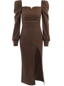 • Chic Details: Enjoy a square collar, bubble sleeves, and a unique slit that adds a touch of sophistication.