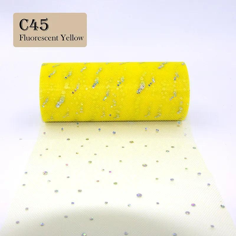 Unleash the glamour with our Sparkling Sequin Tulle Roll for Glamorous Weddings Decor. Transform your special occasions with this stunning decoration essential. It adds a touch of elegance and sparkle, ensuring events are spectacular.