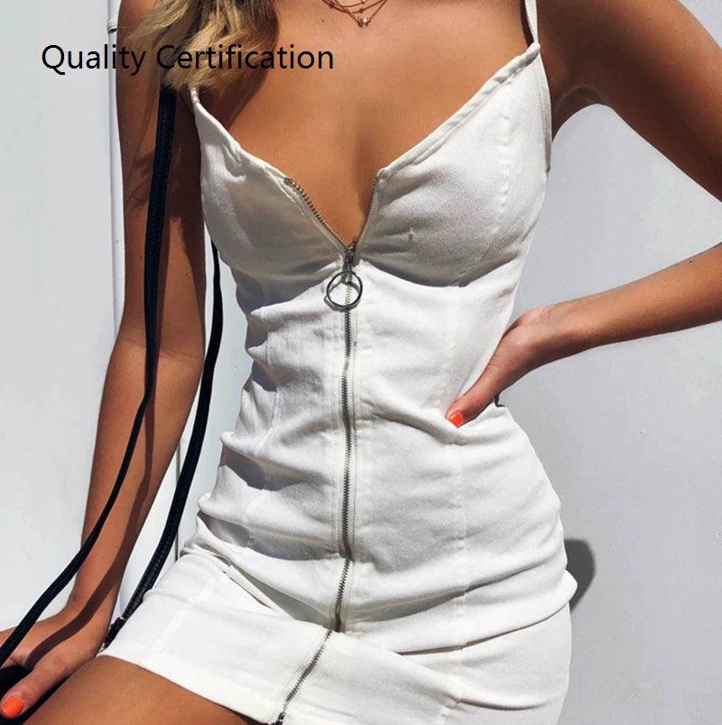 Zipper Party Dress Stylish V-Collar Club Wear for Women