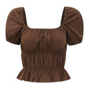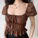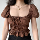 Go Girl Retro Square Collar Puff Sleeve Blouse Vintage Style