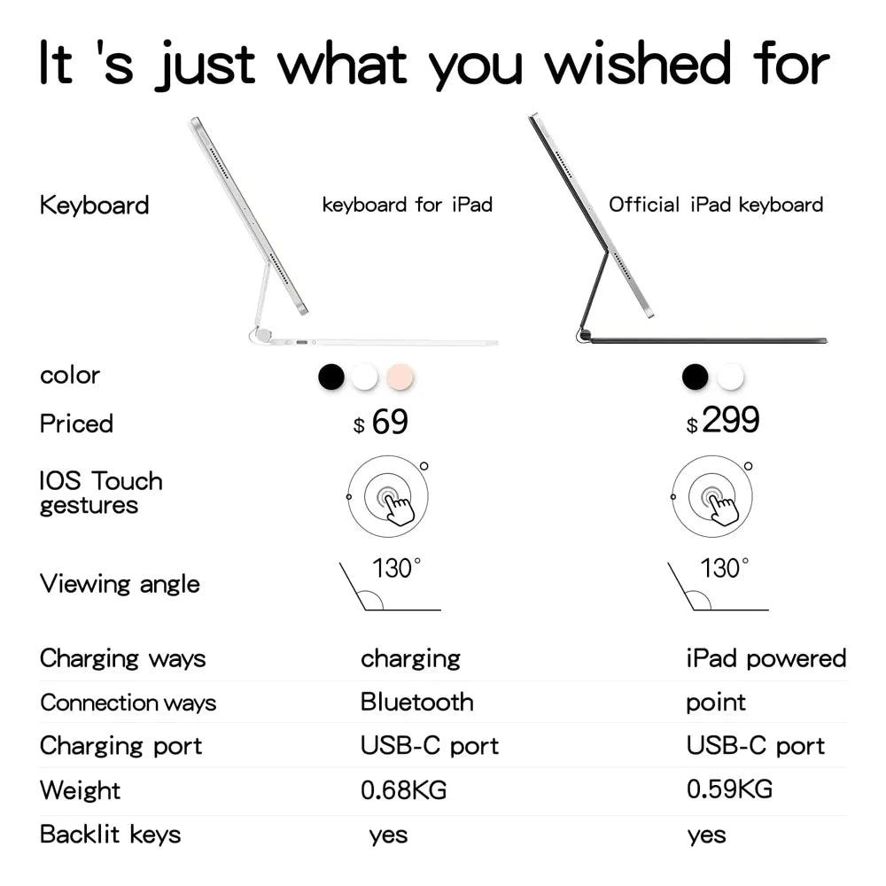 Upgrade your workspace with the GOOJODOQ Magic Keyboard: Ultimate Bluetooth Solution with Backlit Keyboard. This innovative and stylish Bluetooth keyboard is tailored to boost your productivity while offering luxurious features. Say goodbye to cluttered wires and embrace the freedom of seamless connectivity with this exceptional keyboard, perfect for your iPad Pro 11-Inch and iPad Air devices.
