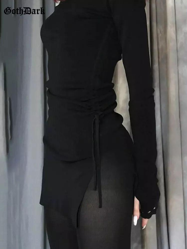 Gothic Drawstring Bodycon Mini Dress for Edgy Women