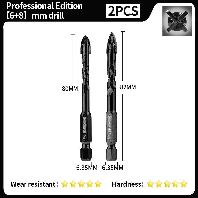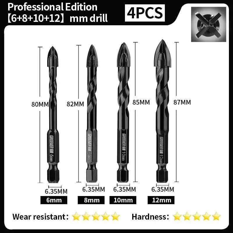 Greener Four Blade Hex Tile Drill Bits Set Premium Quality elevates your drilling accuracy and longevity with a robust four-blade cross design. Ideal for drilling concrete, ceramic tile, impact glass, and other tough materials, it features a secure hex shank for minimal slippage and cobalt steel durability that lasts through demanding jobs.