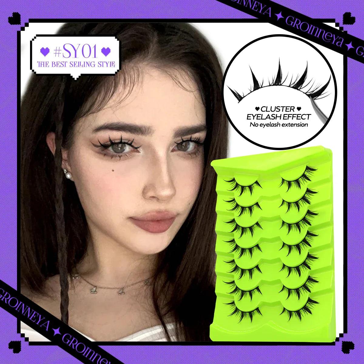 • Wispy Anime Cross False Lashes: Achieve a natural spiky appearance that highlights your eyes.