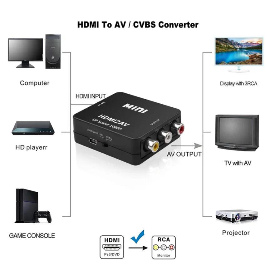 • 1080P HDMI-compatible to RCA Converter - Enjoy high-definition video quality.