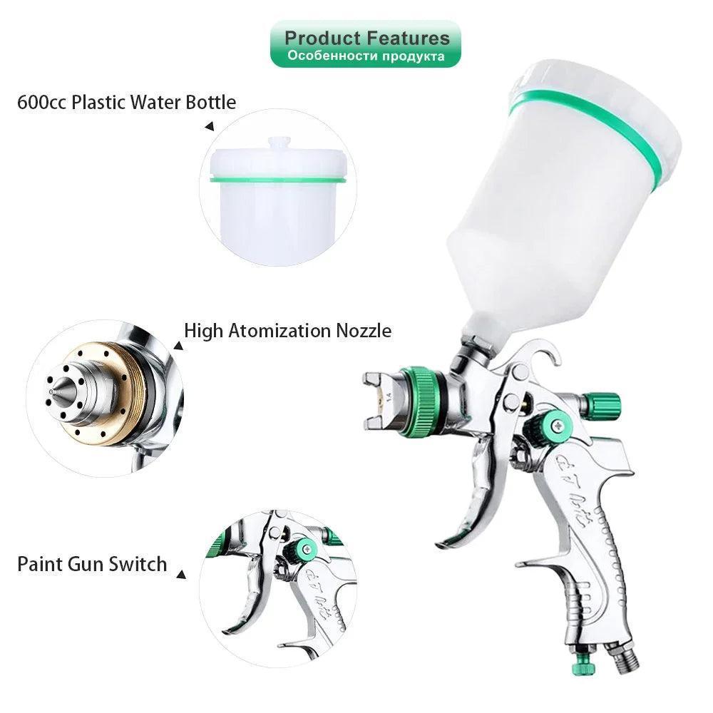 • High Capacity: Equipped with a 600ml cup, this spray gun allows for extended use without frequent refills.