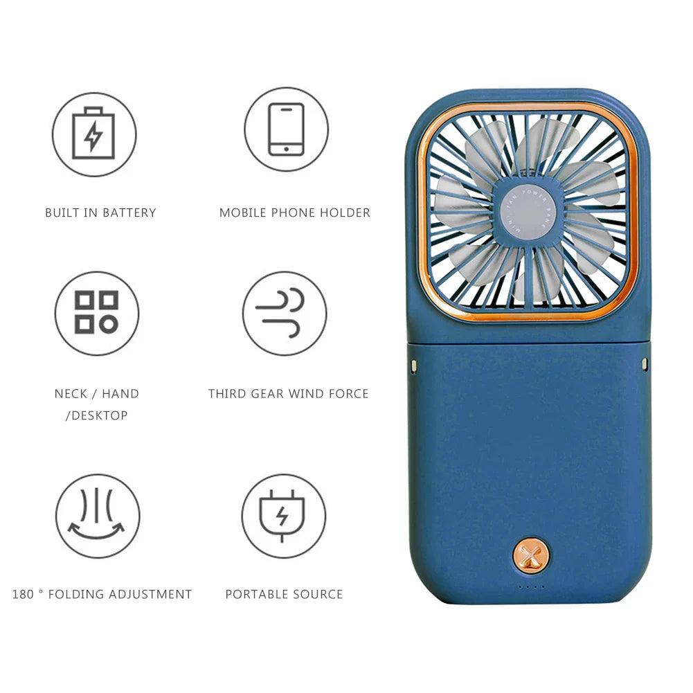 • Portable Power Bank: With a powerful 3000mAh built-in battery, keep your devices charged while enjoying a refreshing breeze.