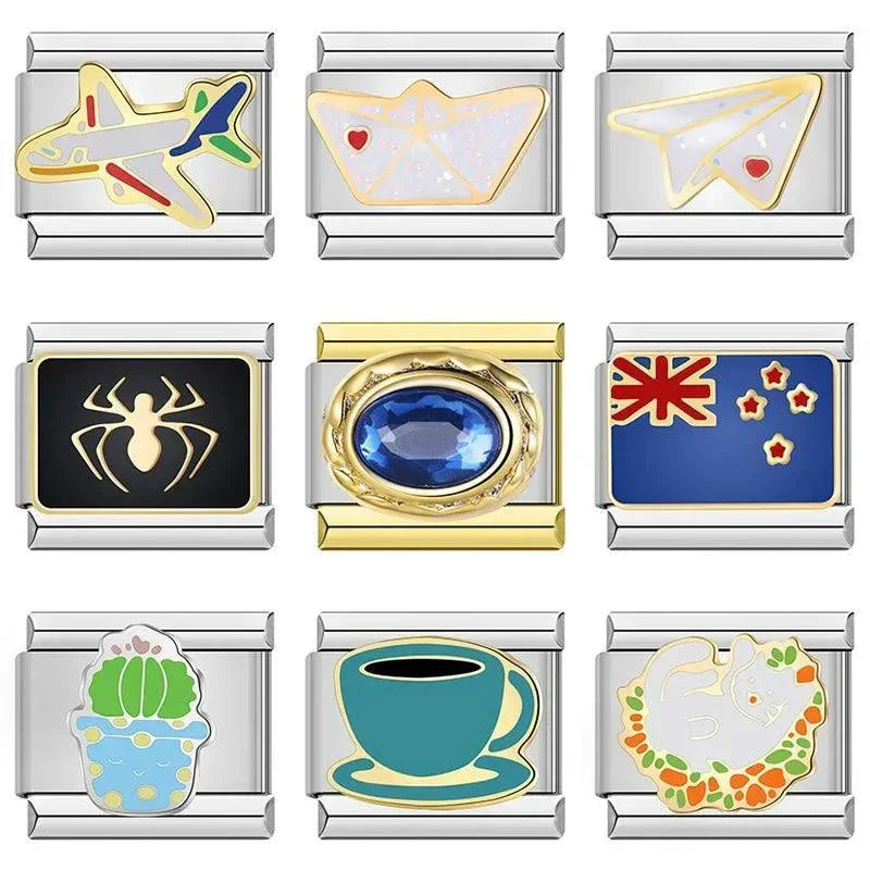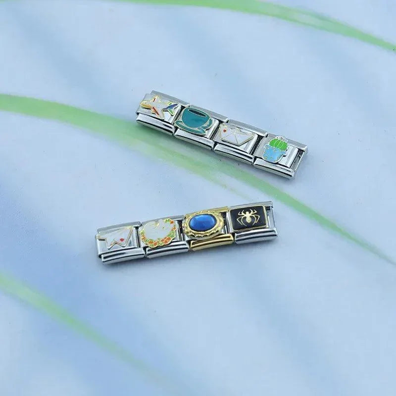 • Q: What is the Spider Cat Coffee Charm Stainless Steel Bracelet Italian, and what makes it special? A: The Spider Cat Coffee Charm Stainless Steel Bracelet Italian is a boutique Italian-crafted accessory built from durable stainless steel. Its four charms—spider, aircraft, cat, and coffee—create a playful, conversation-worthy motif on a sleek 9mm band, delivering a distinctive look unmatched by standard bracelets.