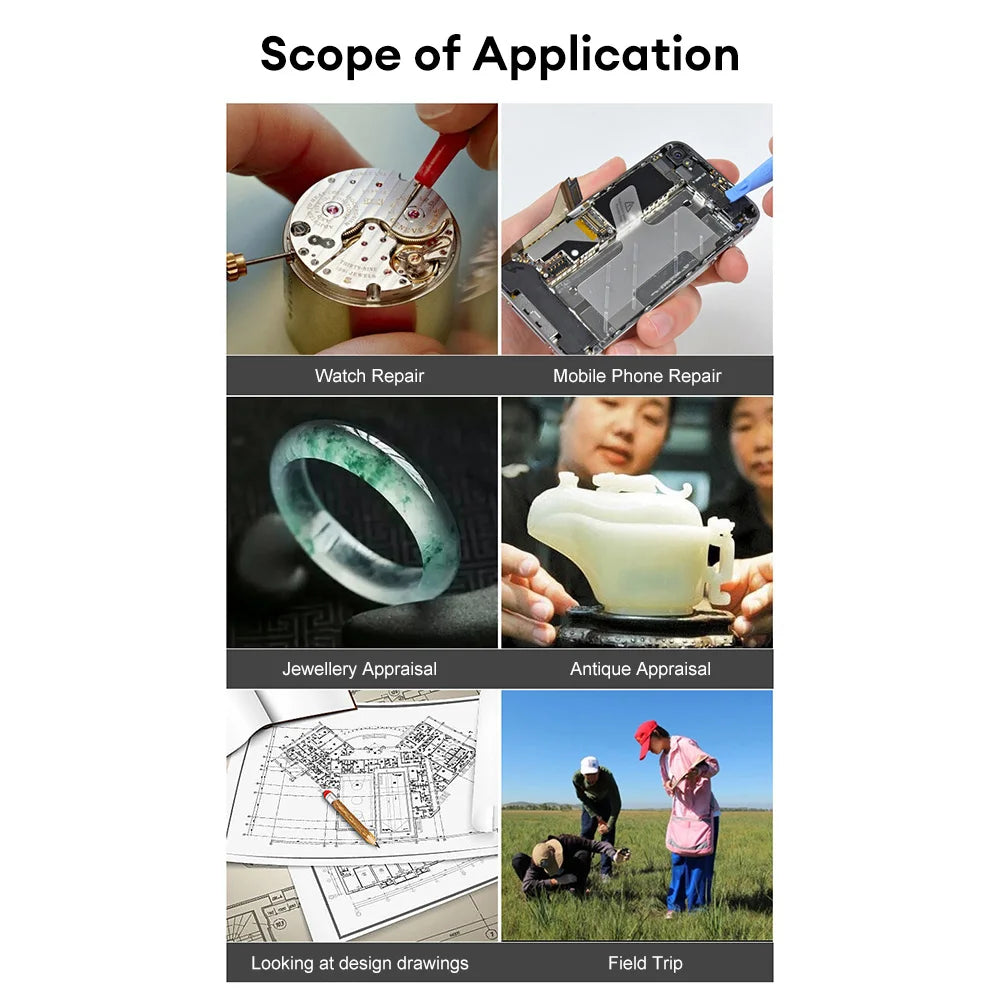 • Comfortable Wear: The hands-free head-mounted design allows for easy maneuverability while focusing on detailed tasks.