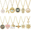 Unveil your inner fashionista with our Mystical Gold Evil Eye Necklace, a stunning piece of jewelry that perfectly marries elegance with contemporary style. This enchanting necklace is tailored for the modern individual, boasting an array of unique charms that not only enhance your outfit but also express your personality.