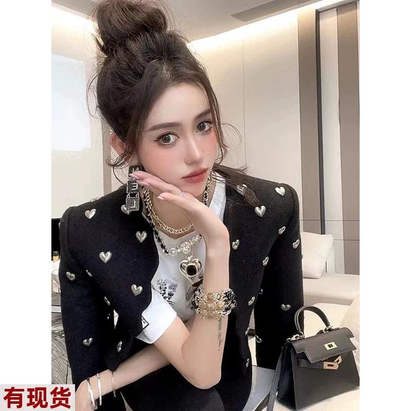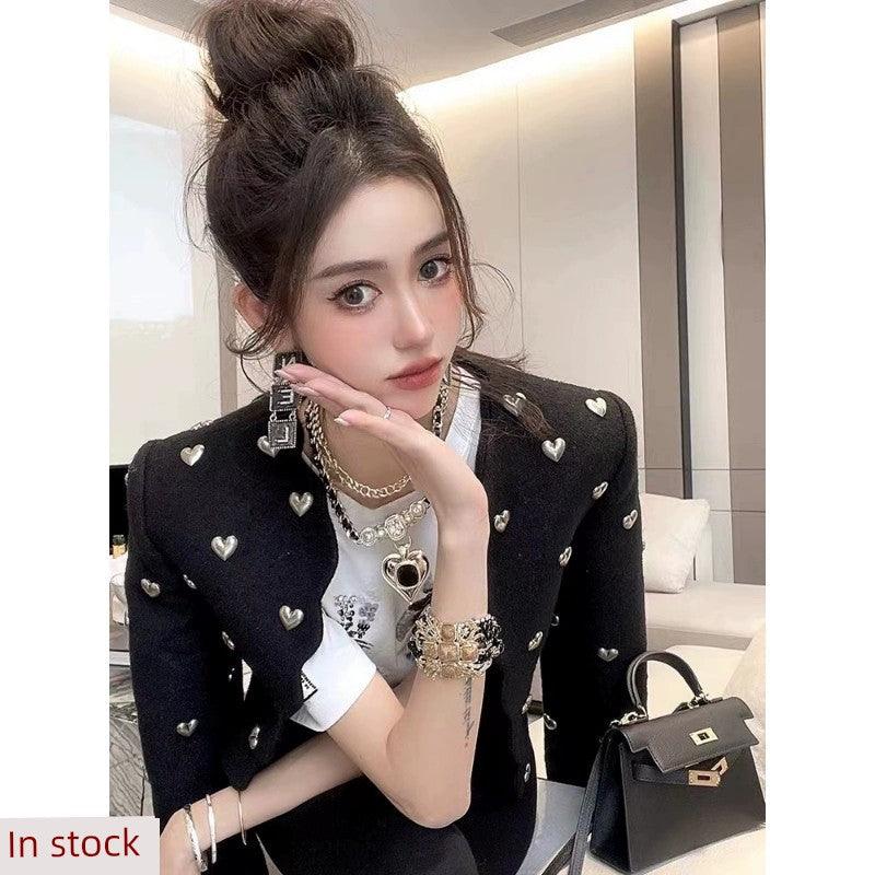 Order now and elevate your wardrobe with this iconic piece. Discover more about the Heart Rhinestone Short Blazer: Celebrity Chic Glamour Look at OurLum.com!