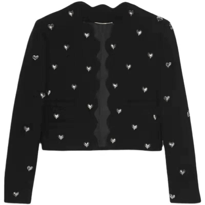 Versatile and stylish, the Heart Rhinestone Short Blazer pairs well with various outfits, allowing you to express your unique style without sacrificing comfort.
