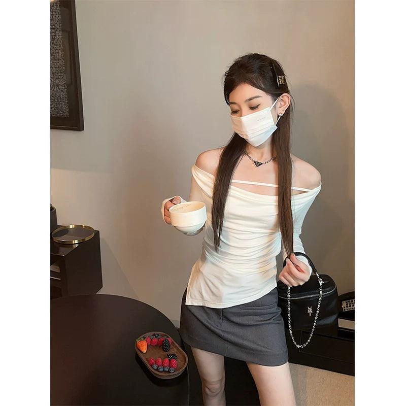 Off-Shoulder Long Sleeves T-Shirt Urban Elegance Modern Style