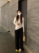 Our Off-Shoulder Long Sleeves T-Shirt Urban Elegance Modern Style is a staple for those with a fast-paced lifestyle. Its solid color pattern provides timeless versatility, allowing you to pair it effortlessly with numerous outfits.