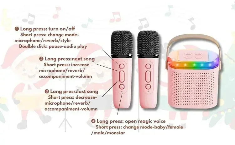 • Dual Microphone Karaoke System: Sing your heart out with friends and family using two included wireless microphones for the ultimate duet experience.