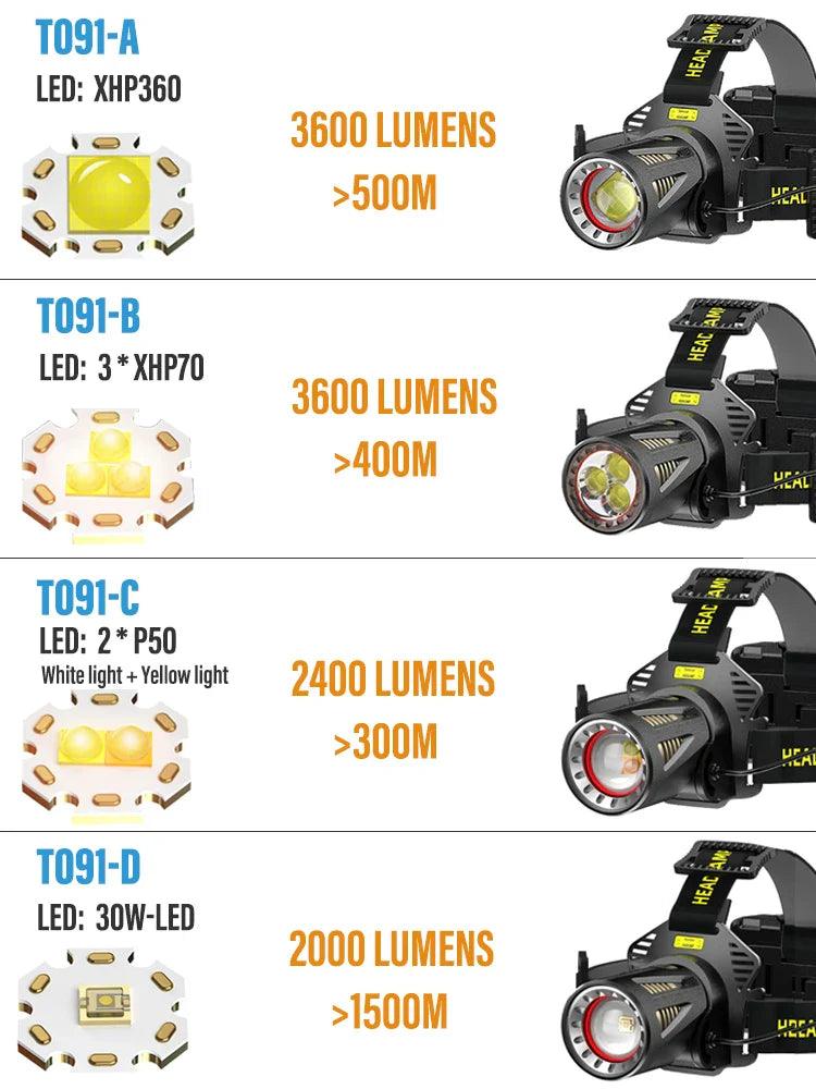 • 1. Ultra Bright Illumination: Featuring advanced XHP360 LED technology, this headlamp shines a powerful beam over 500 meters.