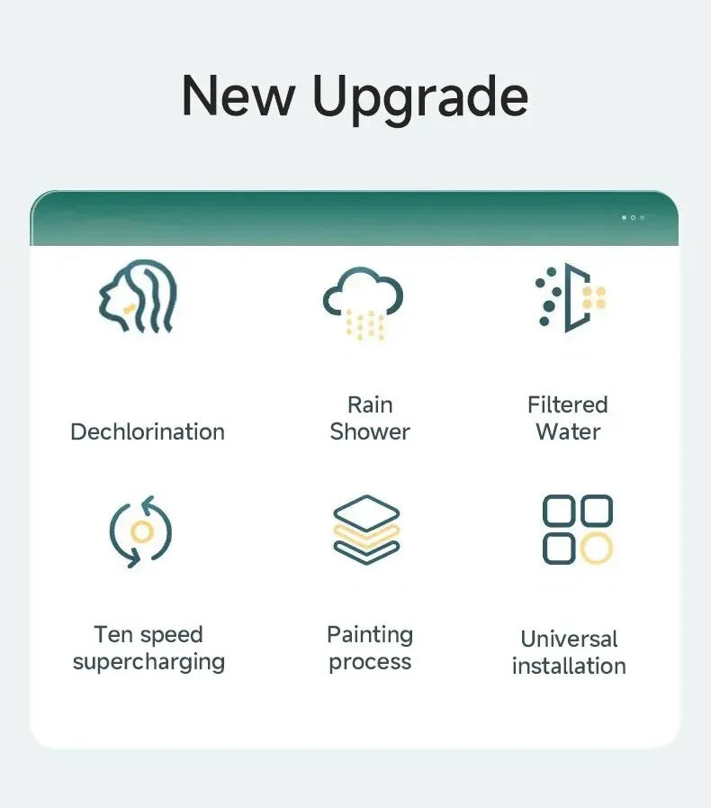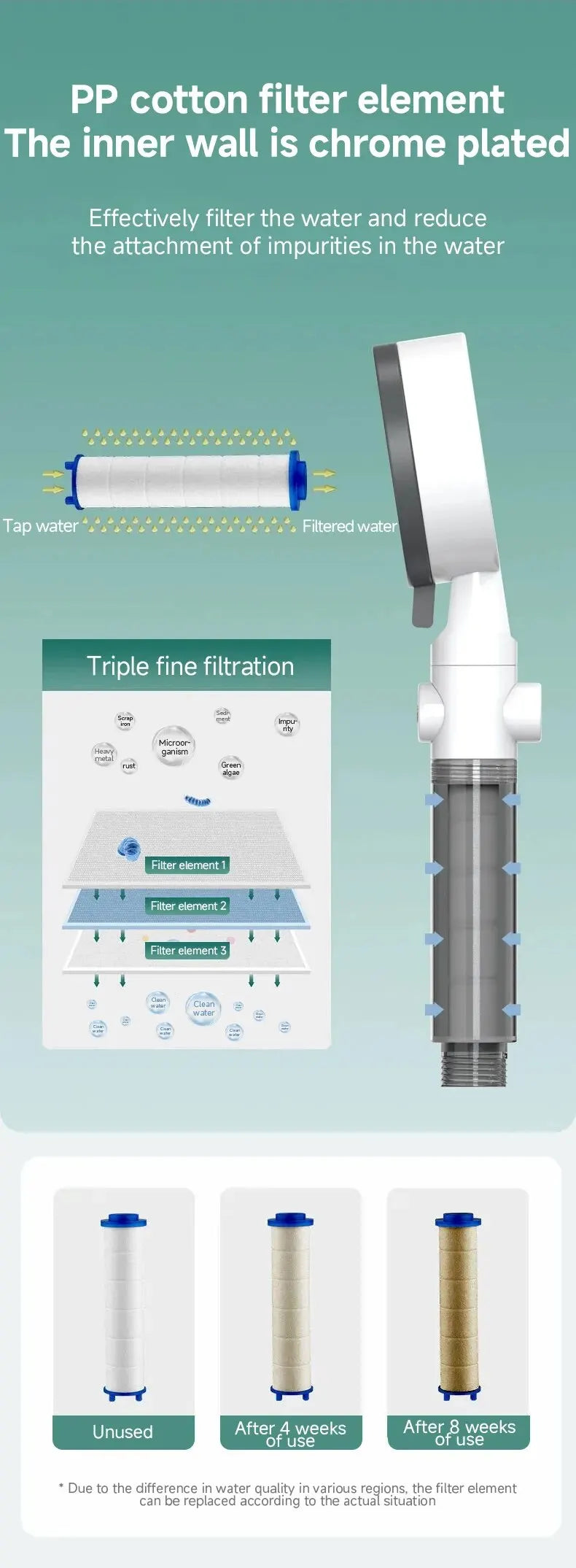 • Integrated Water Filter: Keep your water clean and safe with a built-in filter that reduces impurities, providing a healthier shower experience.