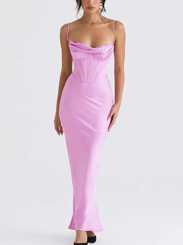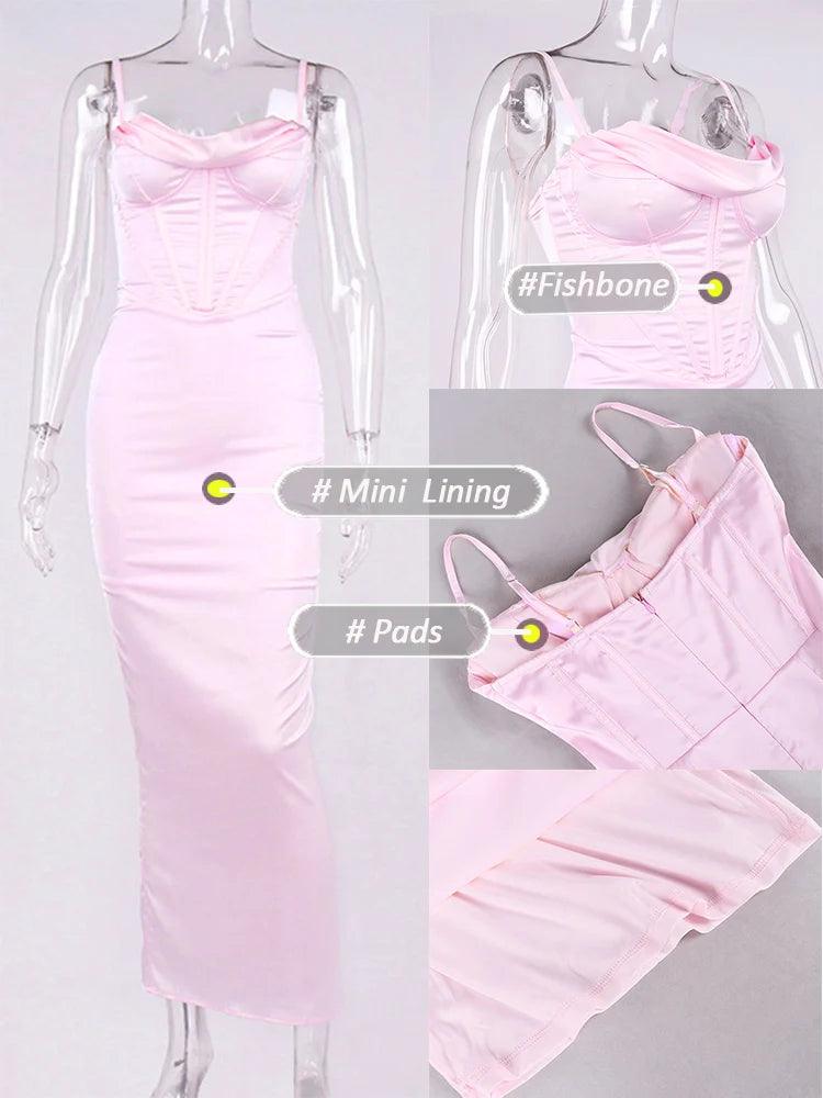 Elegant Pink Satin Maxi Bodycon Dress for Chic Events